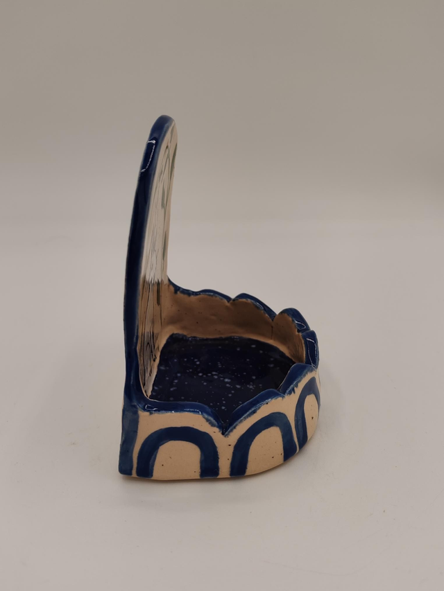 Couleurs : Émail brillant, tons beige, bleu et touche de vert.